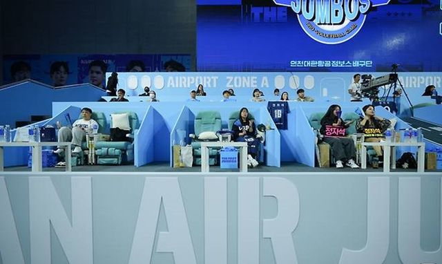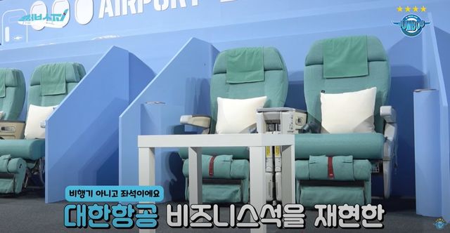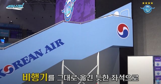 가장 눈에 띄는 건 에어포트존에 자리한 비즈니스석.기존 항공기에 있던 좌석을 그대로 떼어내 옮겨온 것이다.일종의 리사이클 개념으로, 마치 기내에서 배구를 보는 기분을 느낄 수 있도록 지원했다.
