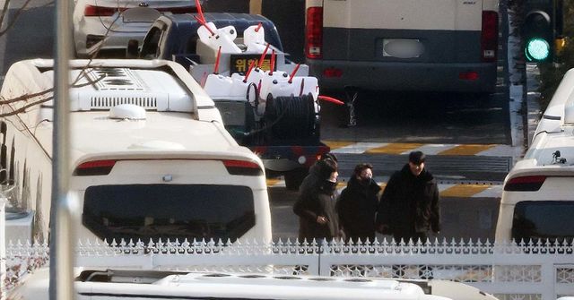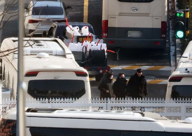 고위공직자범죄수사처와 경찰의 윤석열 대통령 2차 체포영장 집행 시도가 임박한 가운데 12일 서울 용산구 한남동 대통령 관저에 유류로 추정되는 물질을 실은 화물차량이 이동하고 있다. / 뉴스1