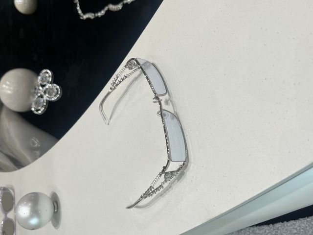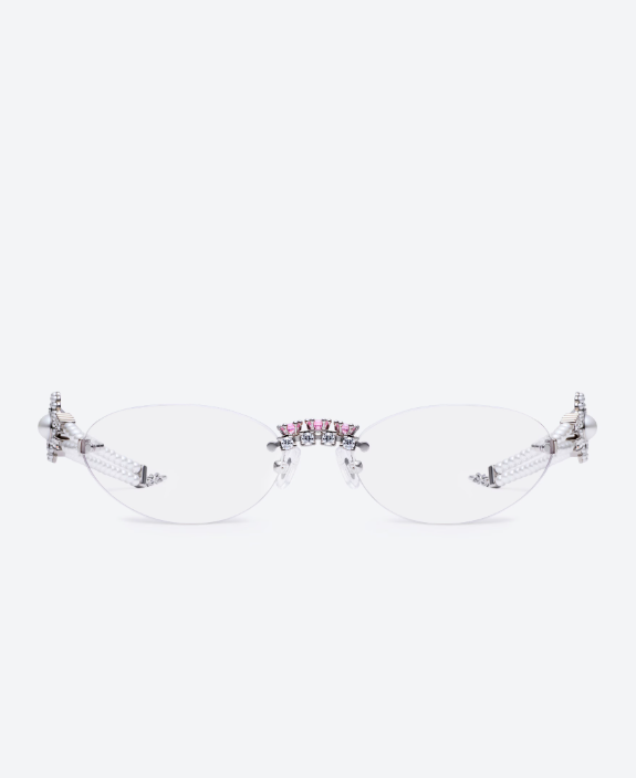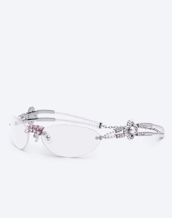 아이웨어의 템플, 렌즈 주변에 주얼리 디테일과 진주가 화려하게 세팅됐습니다. 여느 주얼리 못지않은데요?