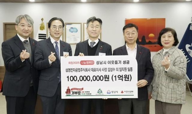 시는 이날 오전 9시 30분 시장 집무실에서 신상진 성남시장과 김성수 삼영전자공업㈜ 대표이사 사장 등이 참석한 가운데 이웃돕기 성금 기탁식을 했다.