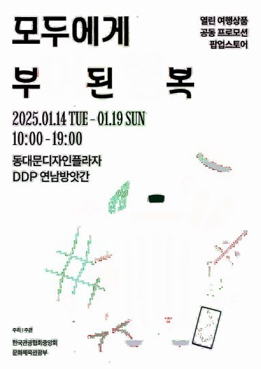 [이데일리 김명상 기자]한국관광협회중앙회는 오는 14일부터 19일까지 6일간 서울 연남방앗간 DDP점에서 ‘열린 여행상품’을 소개하는 팝업스토어를 운영한다. 이번 팝업스토어는 문화체육관광부와 발굴한 다섯 가지 테마의 여행상품을 전시하며, 관광취약계층과 대중의 관심을 모으는 것이 목표다.