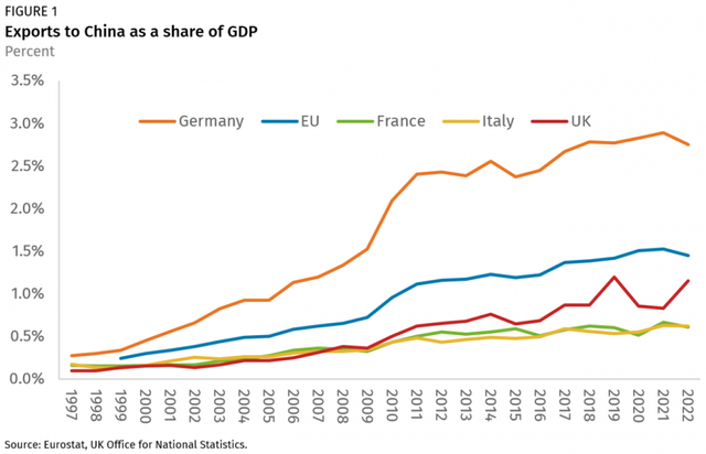 독일 경제 해외 의존도 특히 대중 의존도가 증가함.