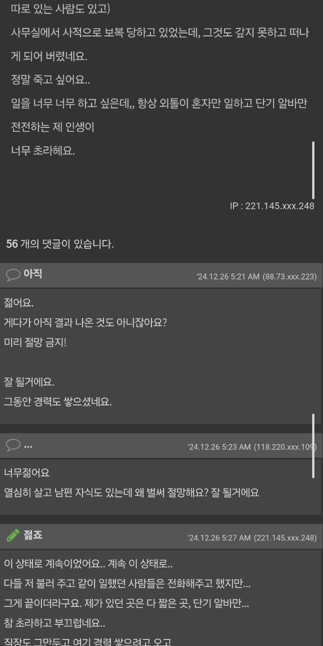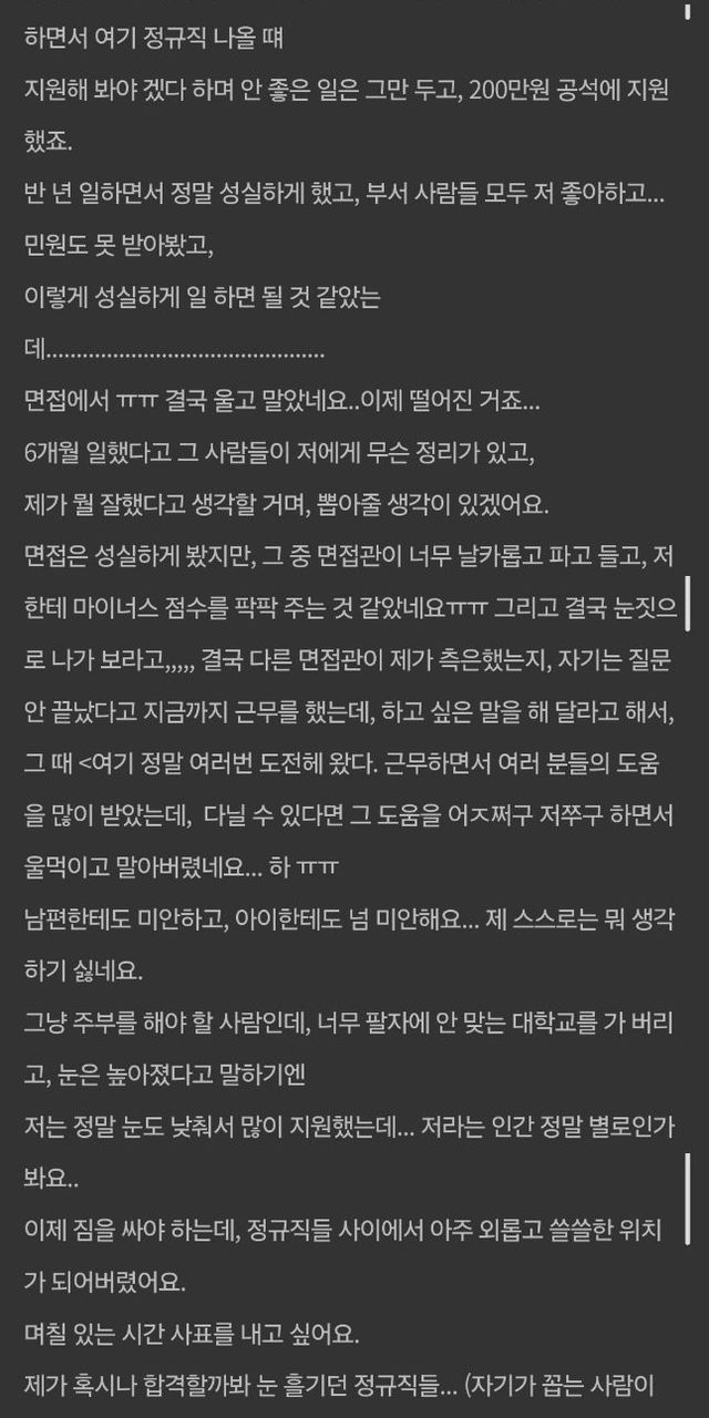 취업을 위한 도전을 그만 해야 맞는 것 같다는 주부
