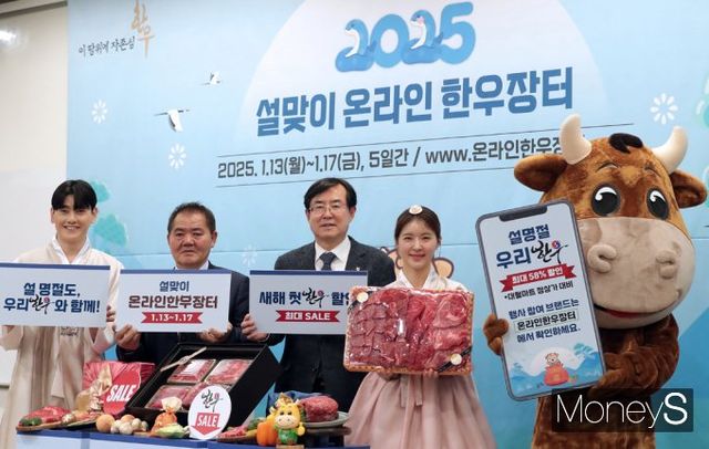 한우자조금관리위원회가 구정을 맞이해 13일 서울 중구 남대문로 대한상공회의소에서 '2025 설맞이 온라인 한우장터' 미디어 행사를 진