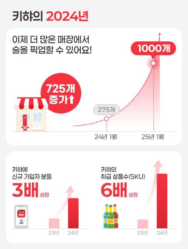 스마트오더 서비스 ‘키햐’은 최근 고속 성장을 거듭하며 두각을 보였다. 창립 2년 만에 키햐가 갖춘 술 종류는 2700여개에 달한다. 17개 도매사와 파트너십을 맺으며 만들어 낸 규모다. 배송 면에서도 우위다. 서울과 수도권의 경우 많은 픽업 매장에 익일 배송을 지원한다. 최근에는 전국 픽업 매장 수 1000개를 달성하며 제품 수령에 대한 편의성을 향상시켰다.