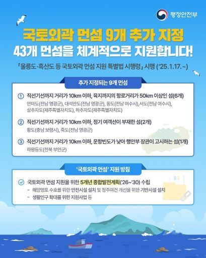 [와이뉴스] 국토외곽 먼섬 9개가 추가 지정되어, 총 43개의 먼섬을 체계적으로 지원합니다!