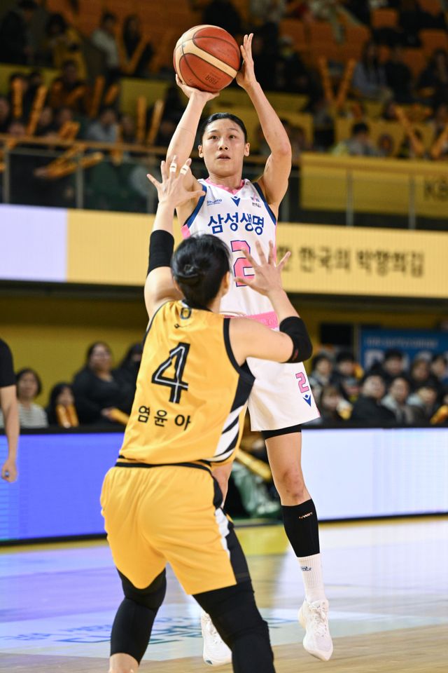 삼성생명은 13일 청주체육관에서 열린 2024~25 여자프로농구 정규리그 KB와 4라운드 원정 경기를 75-52로 이겼다. 이날 승리로 시즌 12승(7패)을 기록한 삼성생명은 2위 우리은행을 반 경기로 쫓으며 순위 싸움을 이어갔다. 반면 인천 신한은행에 밀려 5위로 내려갔던 KB는 3연패에 빠졌다. 최하위 부천 하나은행과 승차가 반 경기에 불과하다.
