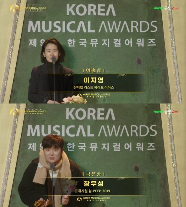 연출상은 '라스트 파이브 이어스'의 이지영 연출이, 극본상은 '섬:1933~2019'의 장우성 작가, 작곡상은 '일 테노레의 윌 애런슨이 받았다. 윌 애런스는 한국어로 수상 소감을 전해 인상을 남겼다.