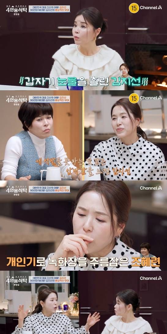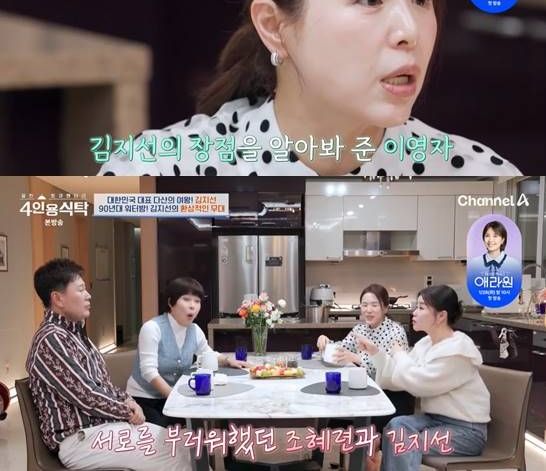 13일 방송된 채널A 예능 '절친 토큐멘터리–4인용식탁’(이하 '4인용 식탁')에서는 김지선이 출연해 다양한 이야기를 전했다. 이날 김지선은 절친한 후배 변기수, 김효진, 조혜련을 초대했다.