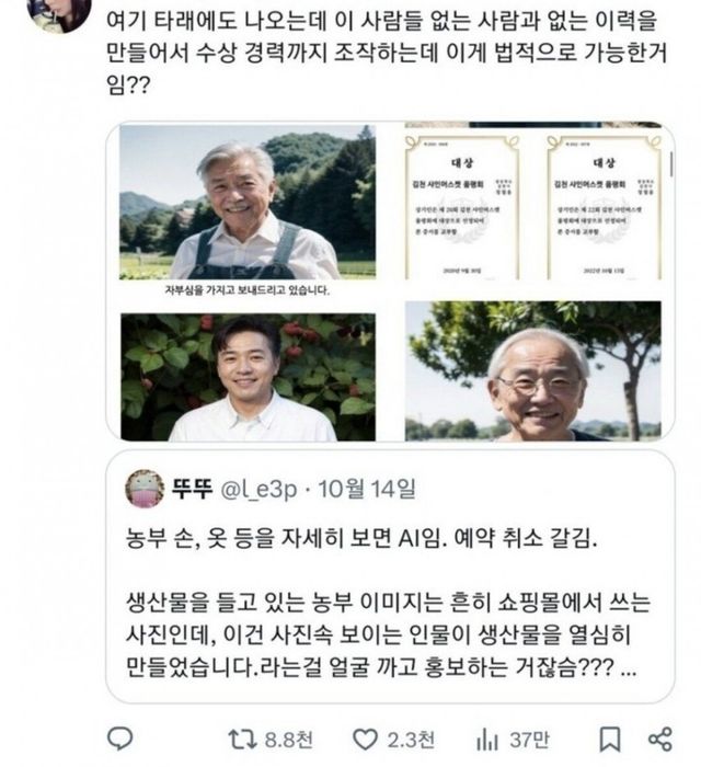 모 과일 쇼핑몰에서 쓴 사진이 ai로 만든거라는 의견이 나옴