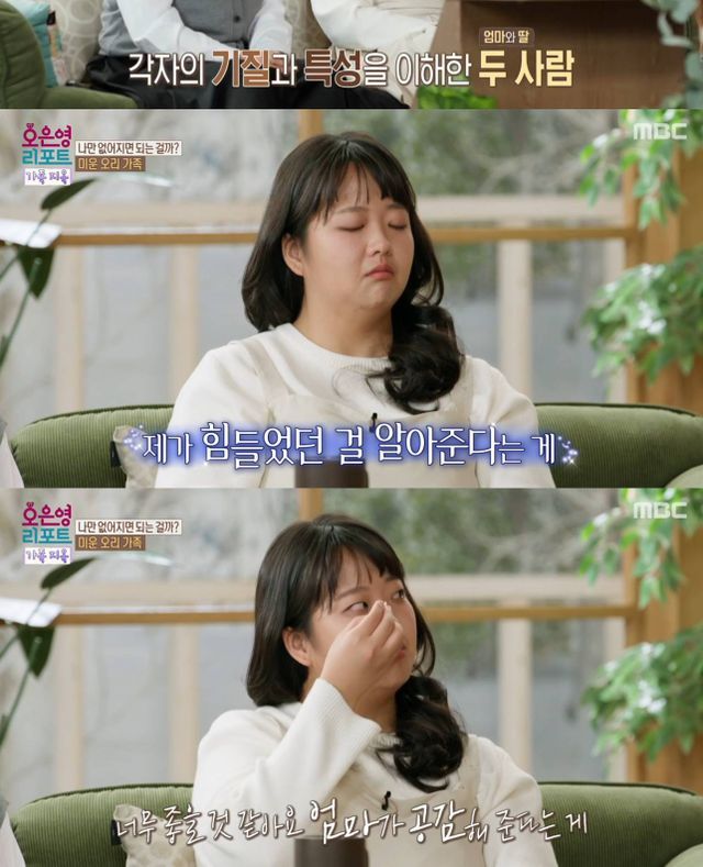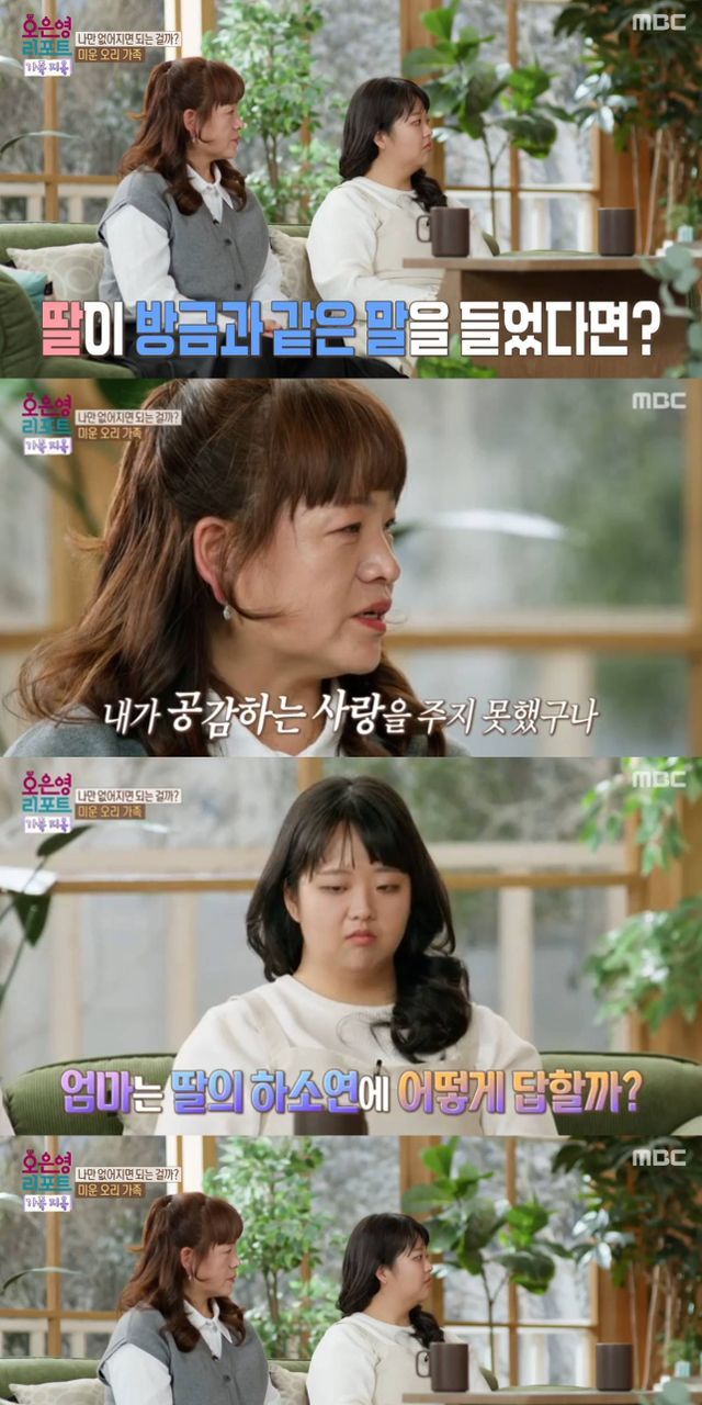 "하린이가(딸이) 엄마의 그런 이야기를 들었다면?"이라고 묻자 딸은 "너무 좋을 것 같다. 엄마가 공감해 준다는 게 제가 힘들었던걸 알아준다는 게. 그게 너무 고맙다"고 말하며 갈등을 봉합한 모습을 보였다.