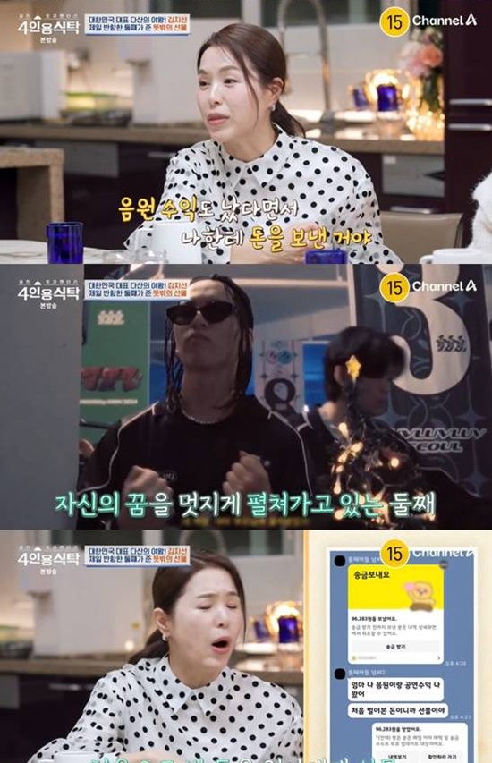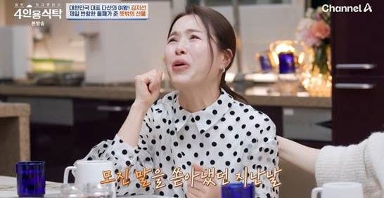(엑스포츠뉴스 김예나 기자) '4인용 식탁' 김지선이 래퍼인 둘째 아들의 사춘기 시절을 회상하며 눈물을 쏟았다.