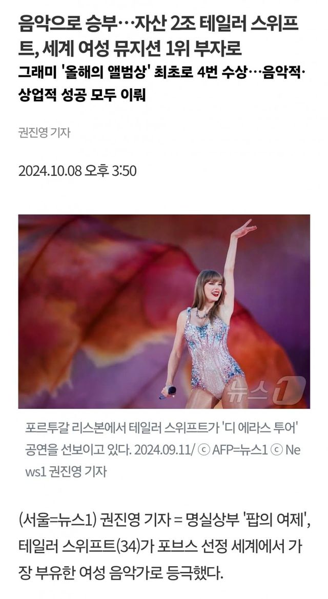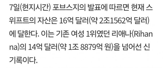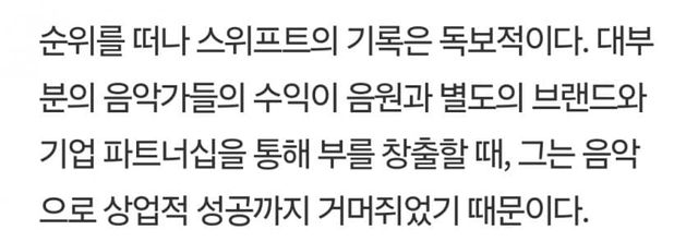 테일러 스위프트는 음악 활동으로 쌓은 재산이라고 하네요