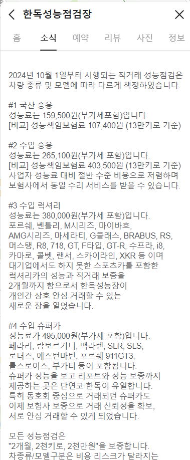 자동차 점검 업계 1티어인 한독 성능장의 슈퍼카 성능 점검료가 50만원임.