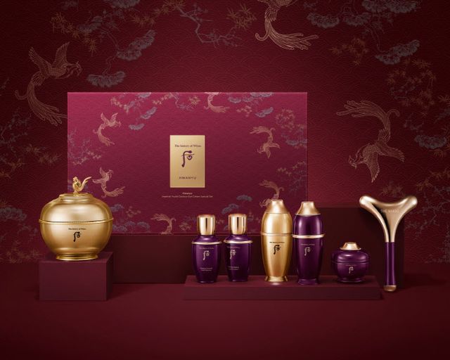 세트는 환유 라인의 상징인 봉황의 힘찬 날갯짓을 모티브로 새해의 소망과 행복을 담았다. 환유는 산삼의 생명력과 영양분을 피부에 전달하는 더후의 럭셔리 안티에이징 라인이다.
