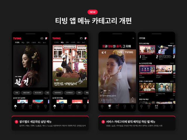 이번 개편은 이용자들이 원하는 콘텐츠 정보를 더 쉽고 빠르게 찾고, 티빙이 제공 중인 서비스를 한 눈에 파악하기 쉽도록 하는 데 집중했다.