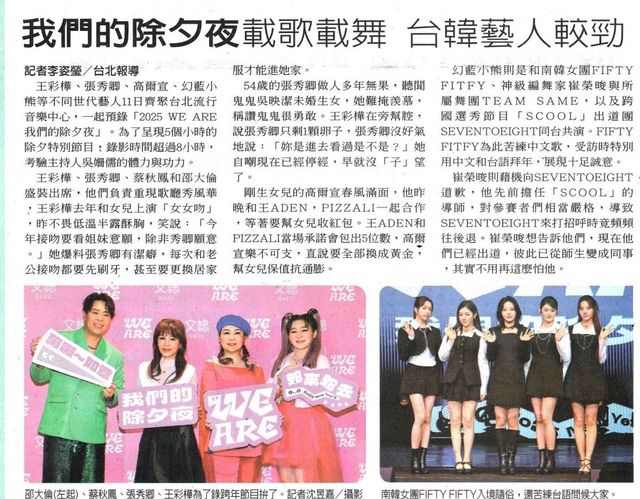 ‘2025 WE ARE 우리의 설날 밤’은 대만 최대의 설 명절 프로그램으로, 대만 내 최고 인기 아이돌 그룹 GENBLUE(젠블루), TEAM SAME, SEVEN TO EIGHT(세븐 투 에잇) 등 다양한 장르의 현지 아티스트들이 출연했고 출연자 중 해외 아티스트로는 피프티피프티가 유일하다.