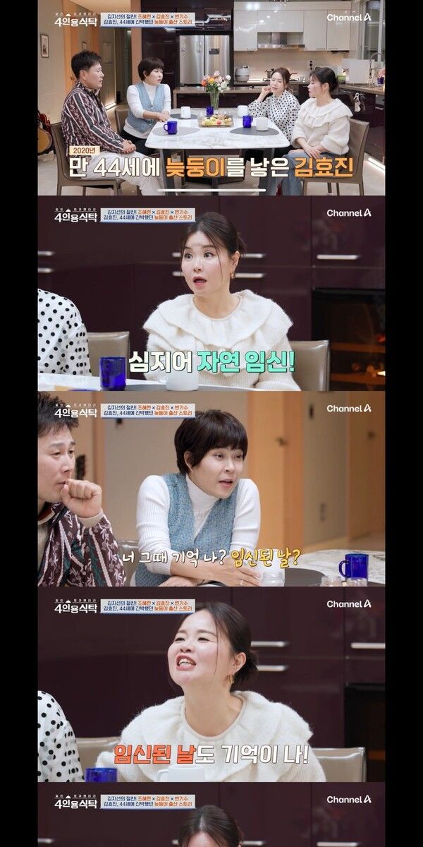 지난 13일 방송된 채널A 예능 프로그램 절친 토큐멘터리 – 4인용 식탁에 출연한 김효진은 조혜련, 변기수 등과 함께 늦둥이 둘째 출산의 비하인드를 공유했다.