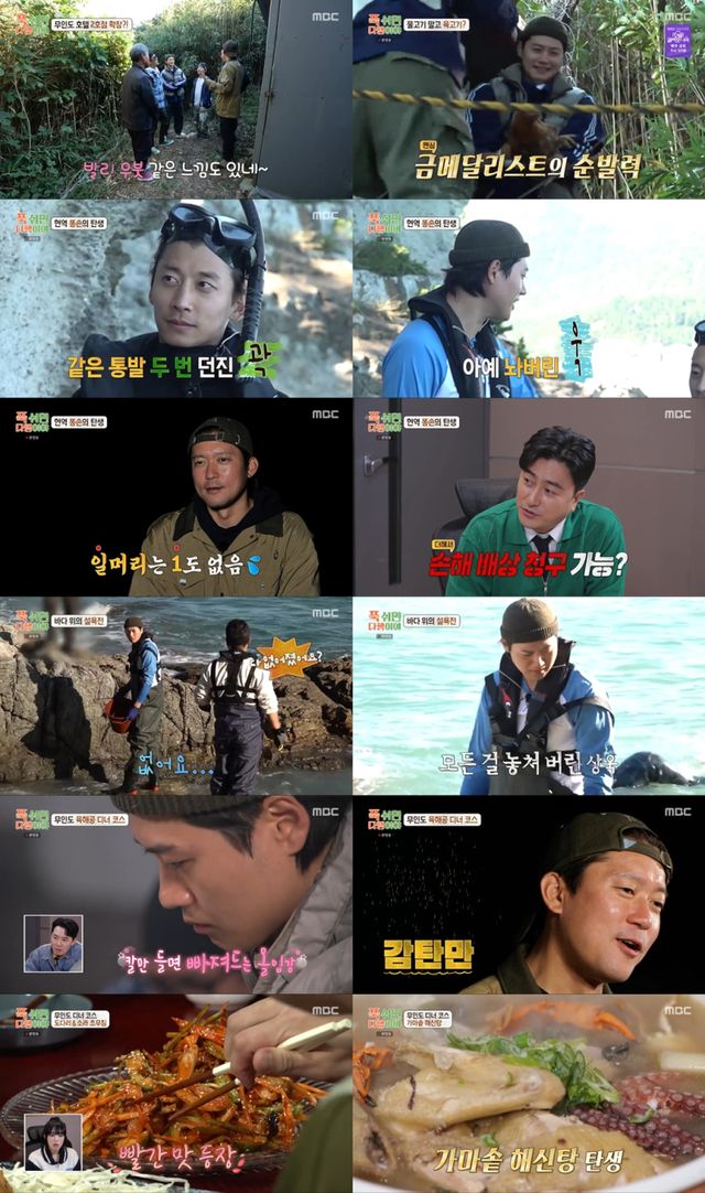 오상욱과 곽윤기는 “몸으로 하는 건 자신 있다”며 통발에서의 실수를 해루질에서 만회하고자 했다. 그러나 오상욱은 해산물이 담긴 양동이를 놓치는 사고를 저질렀다. 이를 수습하기 위해 모두가 더 열심히 움직이고, 마지막으로 베테랑 머구리 박준형이 대형 문어를 잡으며 다행히도 푸짐한 식재료를 공수할 수 있었다.