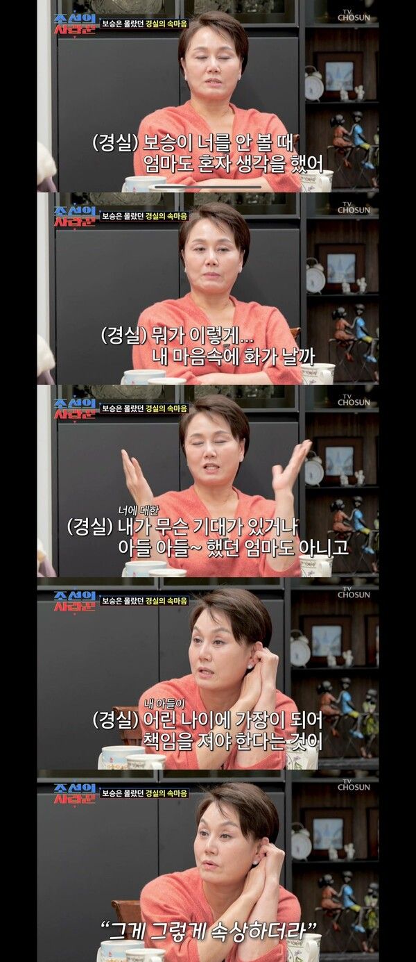 손보승의 대답에 이경실은 아들이 어린 나이에 가장이 되어야 한다는 현실이 안타까웠다고 고백했다.