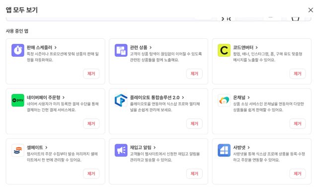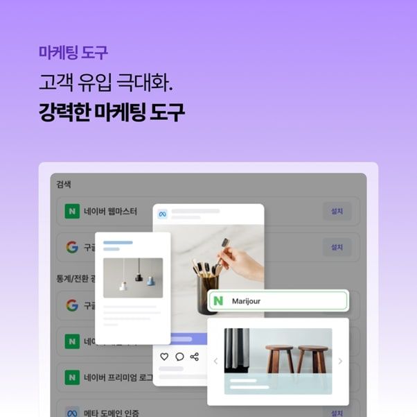 이상민: 이미 그런 자잘한 기능들을 많이 제공하고 있습니다. 구글과 네이버에서 쇼핑몰이 잘 검색되게 하는 구글 서치 콘솔, 네이버 웹마스터, 또 자체 분석 툴 뿐 아니라 구글과 네이버 애널리틱스 코드 삽입, 효율적인 광고를 위한 카카오와 메타 픽셀 삽입 등… 또 외부 연동도 다양하게 붙이고 있습니다. 저희 자회사로 ‘온채널’이라는 상품 도매 서비스가 있어요. 여기서 바로 도매 상품 떼어다 파는 기능도 있고요. ‘코드앤버터’라고 고객 맞춤형 배너, 팝업 서비스도 연동 중입니다.