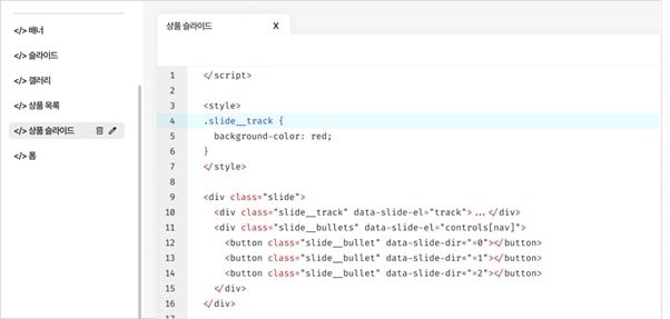 기존 제품들은 단순히 웹사이트에 코드를 삽입하거나 제공된 코드를 변형하는 정도만 가능했는데요. 식스샵 프로의 ‘블록 메이커’를 사용하면 제작자들은 기존 에디터에서 제공하지 않는 요소를 코드로 자유롭게 만들 수 있을 뿐 아니라, 에디터 내에서 요소를 편집할 수 있는 패널까지도 쉽게 만들어낼 수 있습니다. 코드를 다룰 줄 아는 사람들은 필요에 따라 다양한 블록을 만들 수 있고, 이렇게 생성된 블록은 코드를 모르는 사람들도 손쉽게 에디터에서 관리하고 사용할 수 있게 되는 거죠.