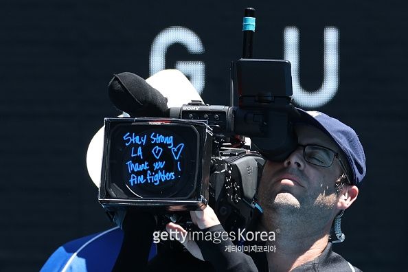 제시카 페굴라(6위·미국)와 도나 베키치(19위·크로아티아)는 지난 12일 대회 1회전 통과 후 카메라에 ‘LA’와 하트 그림을 새겨넣으며 산불 진화를 기원했다.