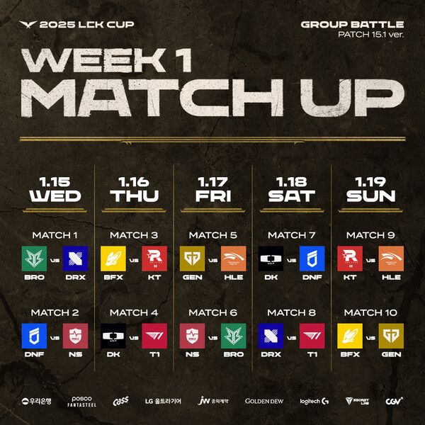 한편, 2025 LCK컵 1주 차는 SOOP, 네이버 이스포츠&게임, 유튜브 LCK 채널 등 온라인 플랫폼을 통해 생중계된다. 경기는 평일 오후 5시, 주말에는 오후 3시부터 시작되며 현장 관람 티켓 예매는 경기 시작 48시간 전부터 인터파크를 통해 가능하다.