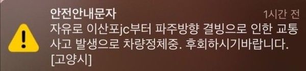 이에 고양시와 김포시, 서울시, 경기도 등은 "자유로 교통사고로 인해 차량 정체가 빚어지고 있다며 우회해달라"는 내용의 안내 문자를 발송했다.