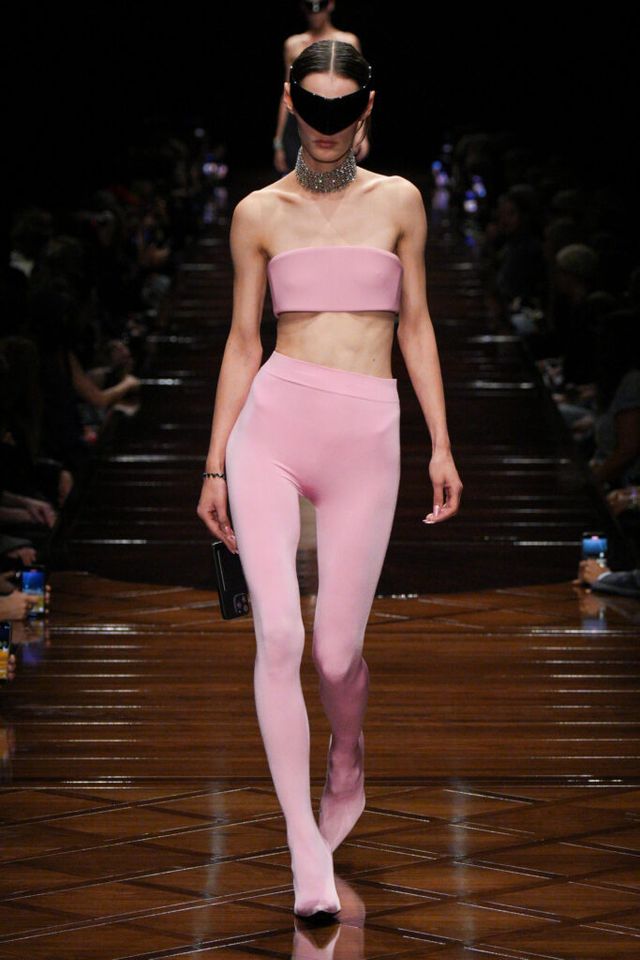 NOTE 기다랗게 펼쳐진 나무 식탁 모양의 런웨이. 뎀나는 할머니 집에 있는 식탁과 그 위에서 골판지에 그림을 그린 뒤 패션쇼를 한 자신의 유년 시절을 회상했다. “35년이 지난 지금, 이번 쇼는 저를 비전의 시작점에 다시 연결시켰어요.” 올해로 하우스 입성 10년 차를 맞이한 그는 란제리, 빈티지 원피스, 슈퍼 로웨이스트 데님 팬츠, 코쿤 실루엣 패딩 코트 등 여전히 날 선 선구적 미감을 앞세워 동시대적이고 쿨한 룩을 선보였다.