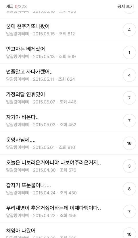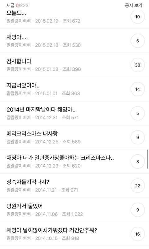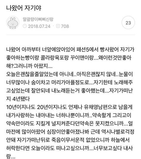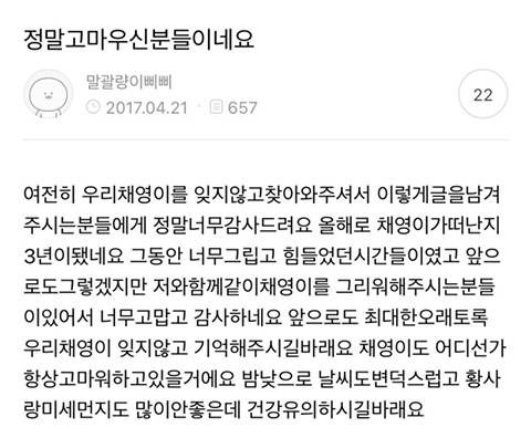 2013년 글을 마지막으로 유채영씨는 암으로 세상을 떠남