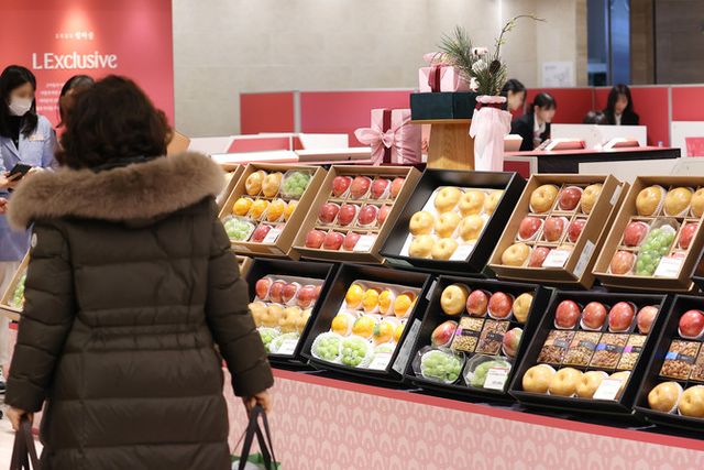 서울 시내 한 백화점에 진열된 명절 과일 선물세트. ⓒ 연합뉴스
