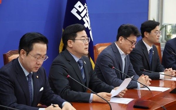 또 '권성동 국민의힘 원내대표가 이탈표 우려 때문에라도 발의하겠다고 한다'는 취재진 질문에는 "저쪽에서 봤을 때 이제는 내란 수사가 이르렀다고 보는 것"이라며 "도저히 둑을 막을 수 없다고 판단한 것"이라고 답했다.