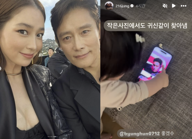 이민정은 영상과 함께 이병헌의 계정을 태그하며 “좋겠수”라고 남기기도 했다.