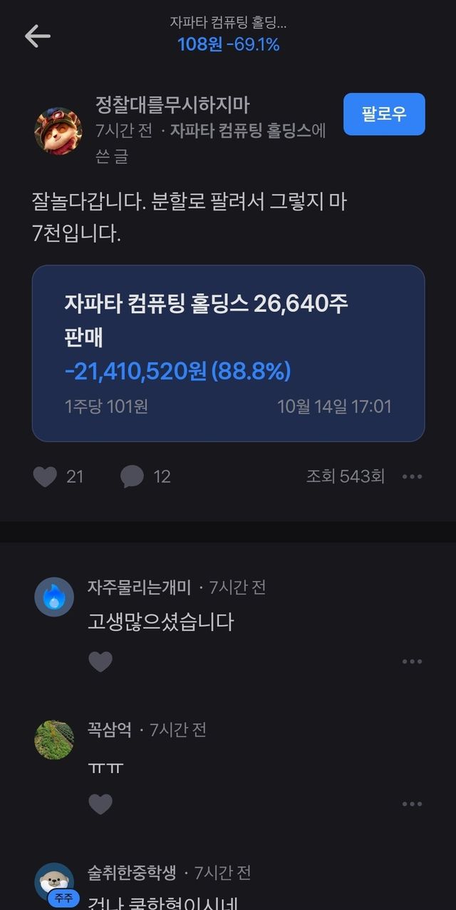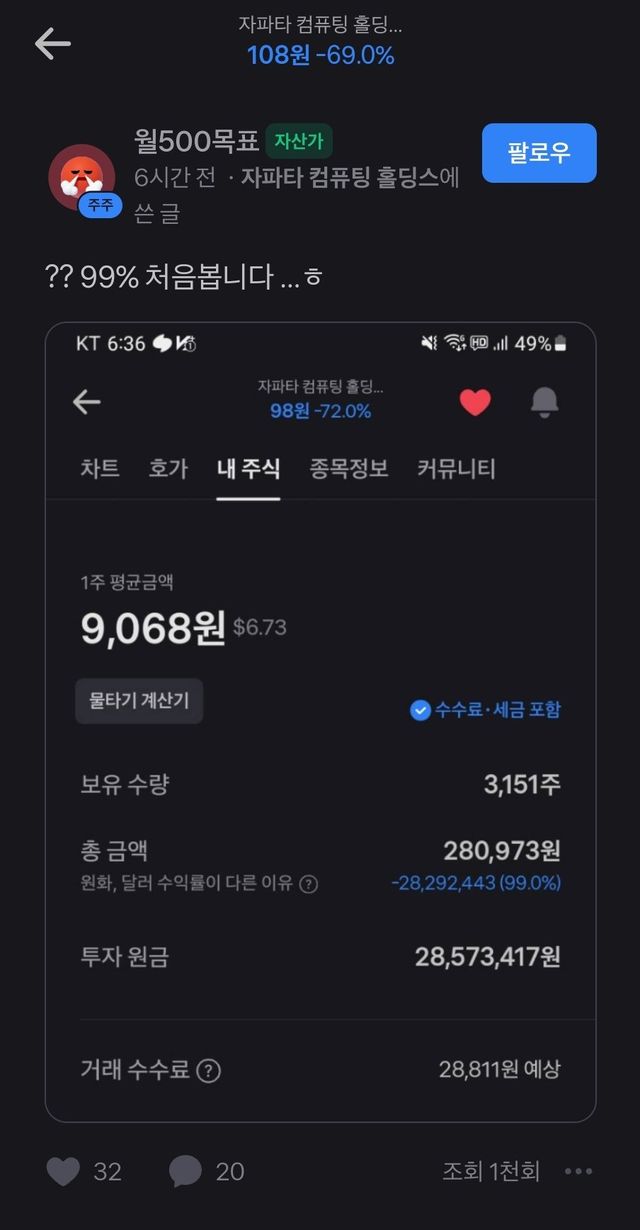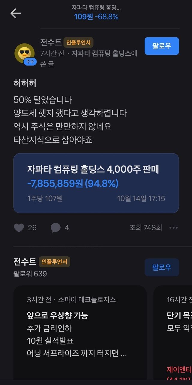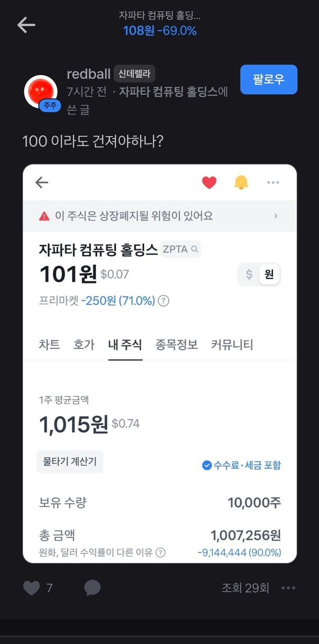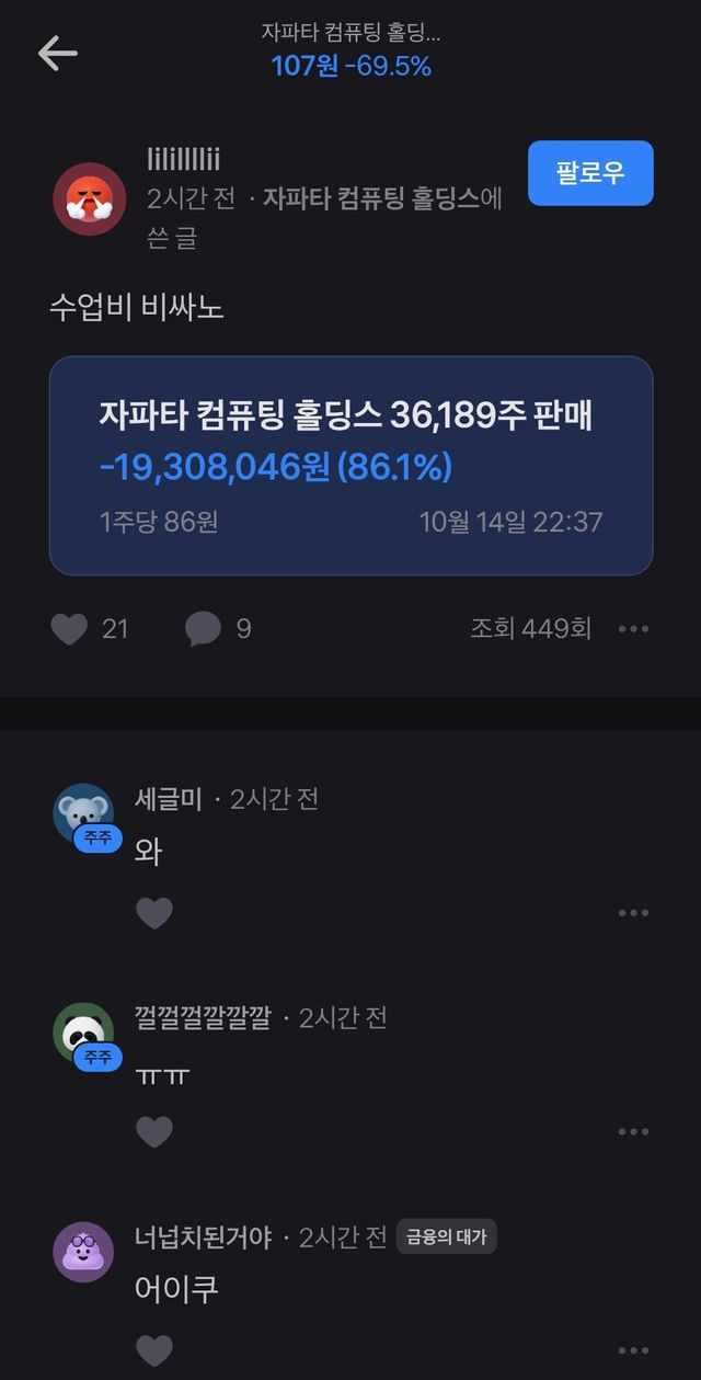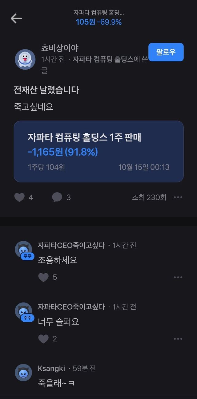 배경설명 : 오늘 자파타AI라는 회사의 CEO는 회사를 버리고 빤스런햇다는것이 언론에 공개되고 사실상 상폐앤딩이라 개떡락을 하엿다.