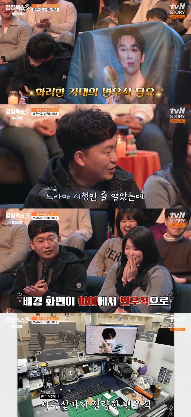 언제부터 변우석에게 빠졌냐는 질문에 남편은 '선재 업고 튀어' 드라마를 본 후라고 답했다. 남편은 "처음에 봤을 때는 '드라마 한 편 보나보다'하고 넘어갔다"며 "(아내의) 휴대폰 배경화면이 아이에서 변우석으로 바뀌었다. 본인이 근무하는 사무실 자리에서도 아이들 가족사진에서 변우석 사진으로 바뀌었다"고 토로했다.