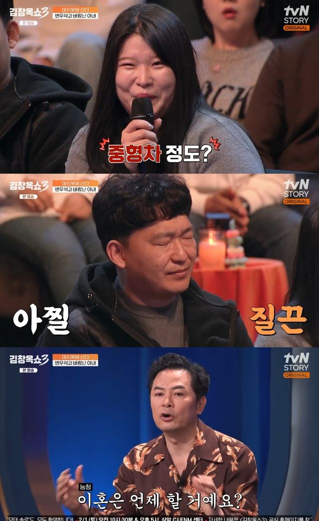 이에 김창옥은 "이혼은 언제 할 거냐"고 능청맞은 질문을 던져 모두를 폭소케했다.
