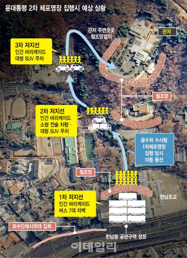 이르면 15일 새벽 2차 체포영장 집행이 시도될 것으로 예상되는 가운데, 경호처가 강경대응할 경우 국가기관 간 물리적 충돌과 함께 2~3일에 걸친 장기 대치 상황으로 이어질 수 있다는 우려까지 제기되고 있다.