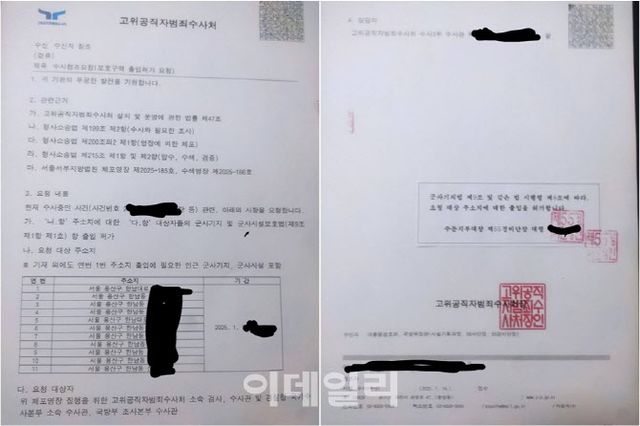 공조본은 14일 오후 55경비단에 ‘체포영장 집행을 위해 공수처 소속 검사, 수사관 및 국가수사본부 소속 수사관, 국방부 조사본부 수사관의 출입 요청’ 공문을 발송했다. 앞서 전날 보낸 협조 요청 공문에는 “영장 집행을 막으라는 위법한 명령에 따르지 않더라도 직무유기죄 성립 등 명령 불이행에 따른 피해는 없을 것”이라면서도, “집행에 협조하지 않을 경우 형사 처벌 등 불이익이 따를 수 있다”는 경고도 담겨 있었다.