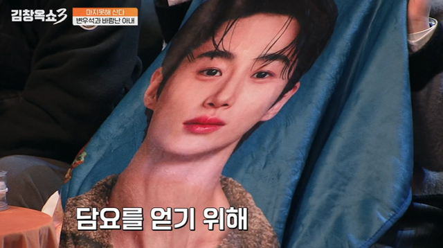 이어 스튜디오에 모습을 드러낸 사연의 주인공인 남편은 “처음엔 그냥 드라마를 보는 정도로 알았는데 휴대폰 배경화면도 아이에서 변우석으로, 근무하는 사무실 컴퓨터 배경화면도 가족사진에서 변우석 사진으로 바뀌었다”며 “변우석 담요를 얻기 위해 (굿즈) 매장 직원과 내통하기도 했다. 변우석이 나오는 굿즈가 있으면 연락을 달라고 했다. 저는 사장님과 친분이 있는 지인인 줄 알았다. 그런데 아니더라”고 말했다.