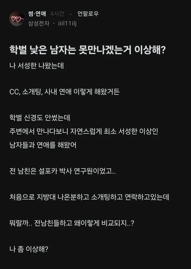 학벌 낮은 남자는 못 만나겠는거 이상해?