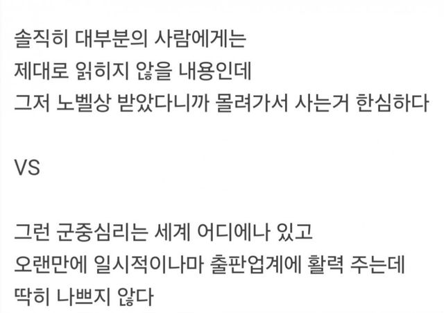 사람마다 의견이 갈리는 한강 소설 열풍