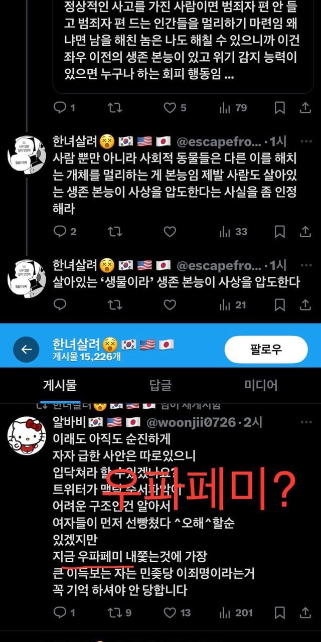 우파페미= 우파 마르크스=우파 시진핑 = 우파 김정은 같은 괴변임