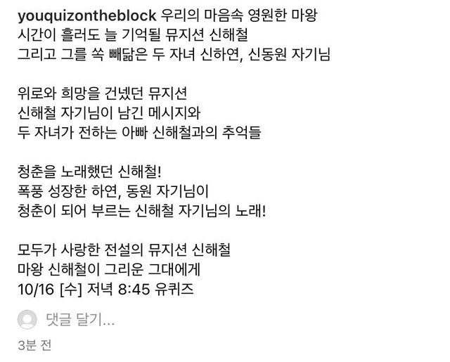 신해철 자녀들의 출연 예고하는 유퀴즈