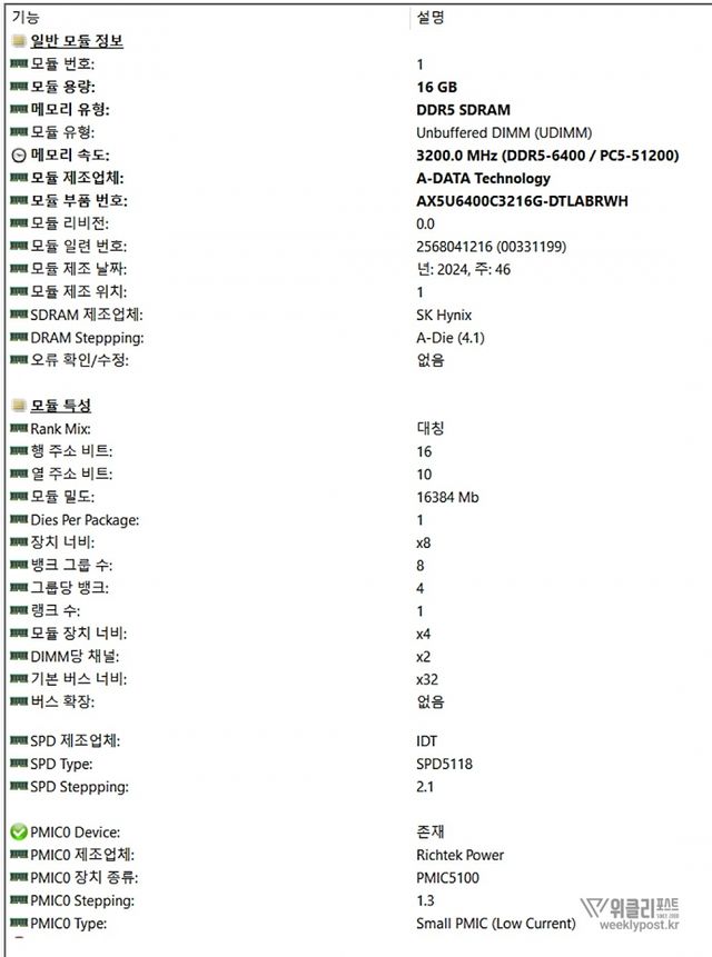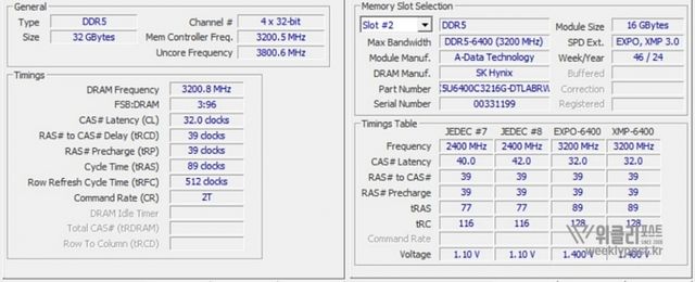 ADATA DDR5-6400 CL32 LANCER BLADE RGB 화이트 역시 하이닉스의 메모리를 사용했다. 사용자가 어떤 시스템 트러블을 겪을 가능성이 현저히 낮다는 의미이다. 더구나 기본 클럭이 아닌, 여러 방법을 통해 오버클럭이 곁들여지는 고성능 메모리라는 점에서 하이닉스의 DRAM을 사용하고 있는 점은 반드시 짚고 넘어가야 할 부분이다.