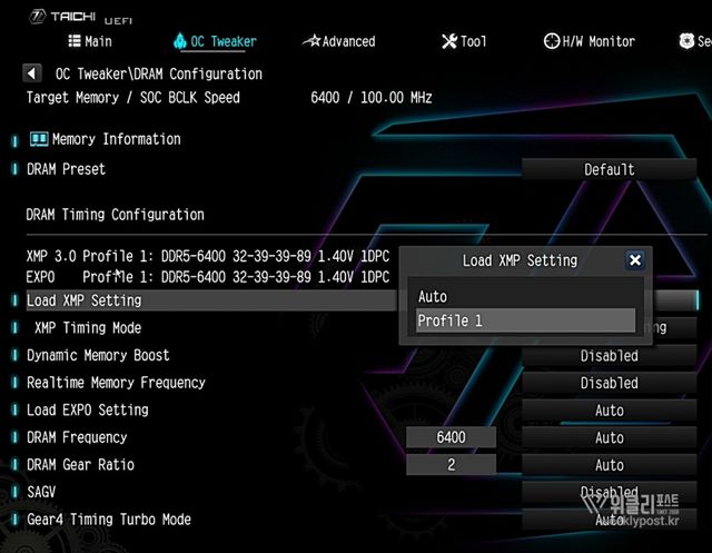 고성능 오버클럭 메모리를 사용하는 경우 XMP나 EXPO를 반드시 알고 있어야 한다. 메모리에 공급되는 전압과 각종 타이밍, 레이턴시를 일일이 설정하는 건 마니아로서도 매우 어려운 일이다. 이를 좀 더 쉽게 설정할 수 있는 것이 XMP와 EXPO라 할 수 있다. 메모리가 사용할 전압과 각종 설정을 프로파일 형태로 메모리가 갖고 있다가, 메인보드에서 해당 값을 호출하면 자동으로 설정해 주는 기능인데, 쉽고 빠르게 오버클럭 메모리의 설정을 마무리할 수 있다.