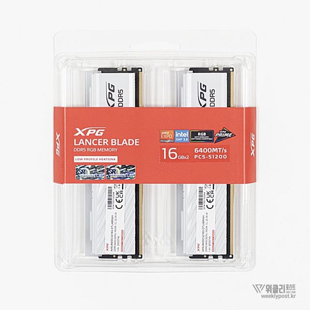 ◆ ADATA DDR5-6400 CL32 LANCER BLADE RGB 화이트 32GB 패키지 서린