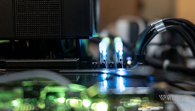 상단의 RGB 부분은 화려하고 정갈하게 빛이 확산되도록 반투명 재질의 라이트 바를 넣었다. 모서리를 살짝 절삭 가공한 덕분에 RGB가 빛을 발하기 시작하면 정갈하지만 화려한 RGB를 맛볼 수 있다. 최근 파워부터 그래픽카드까지, 화이트에 대한 수요가 전반적으로 높아지고 있어 깔맞춤을 원하는 소비자에게도 긍정적으로 작용할 것으로 예상된다.