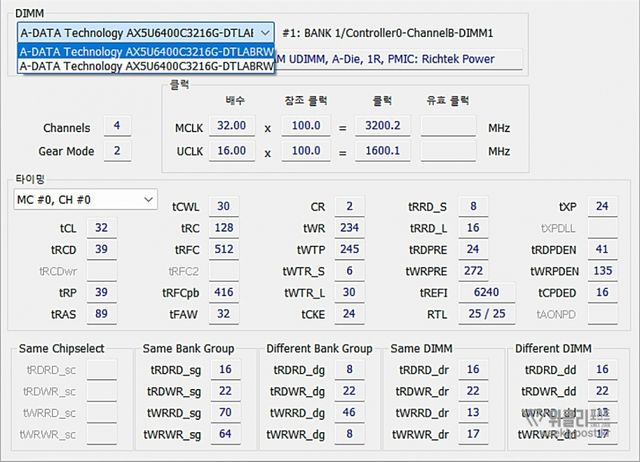 동작 클럭: 6400MHz (PC5-51200)