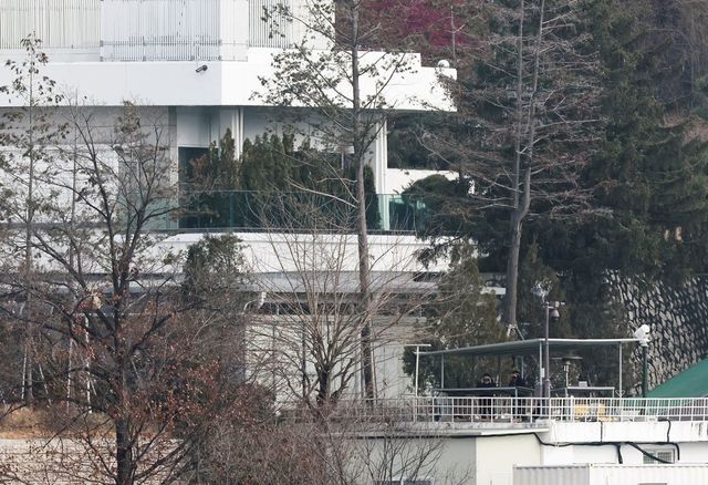 윤석열 대통령에 대한 2차 체포영장 집행을 앞둔 14일 서울 용산구 한남동 대통령 관저에서 망원경과 캠코더를 든 경호처 요원들이 바깥 동향을 살피고 있다. / 뉴스1